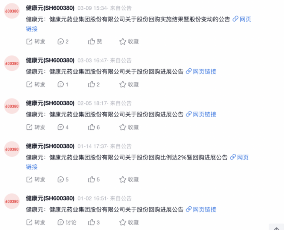 看一下健康元这些日子发布的公告不难发现,密密麻麻都是关于股份回购的,按照公司此前的公告,这些回购已经全部完成注销。