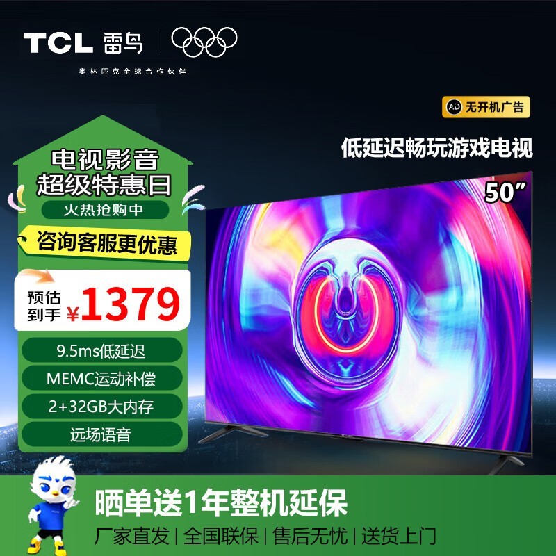 雷鸟鹏6SE智能电视50英寸4K超高清仅1249元