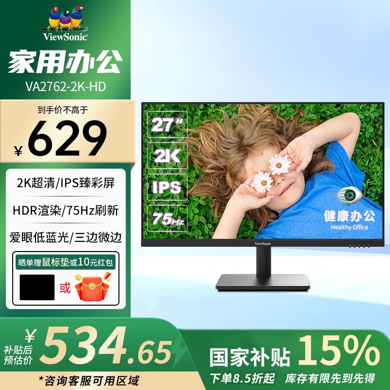 优派VA2762-2K-HD显示器京东特惠534元享24期免息