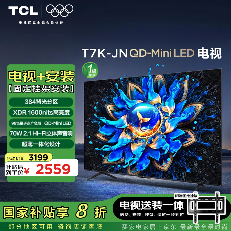 TCL 55T7K-JN QD-Mini LED电视京东特惠至2303元