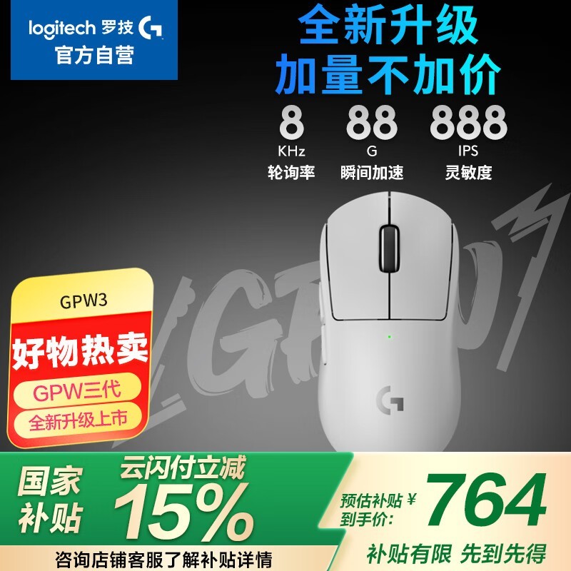 罗技LOGITECH GPW三代无线鼠标白色款震撼来袭