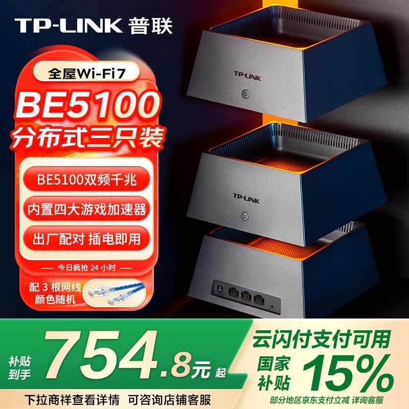 TP-LINK全屋WiFi7子母路由器BE5100分布式两只装优惠促销