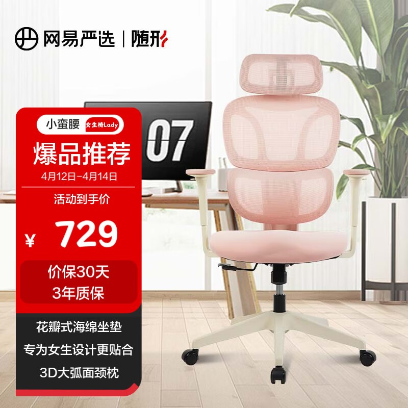 网易严选小蛮腰S9Lady女生椅春云粉款611元到手