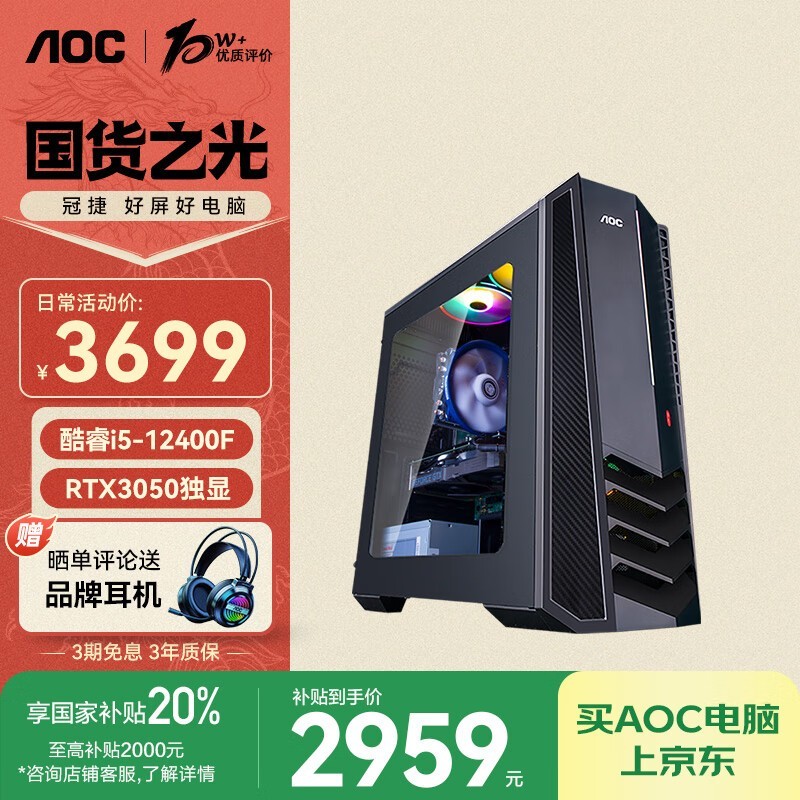 AOC的卢916台式电脑主机12代i5-12400F/16G/512G/RTX3050独显