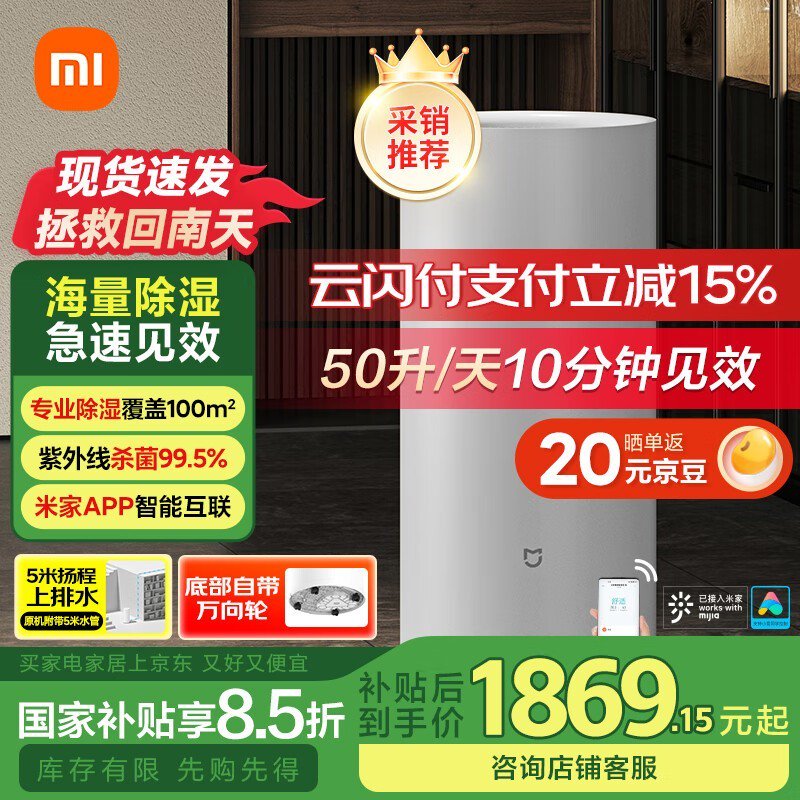 米家除湿机DM-CS50CFA1A大空间静音除湿促销