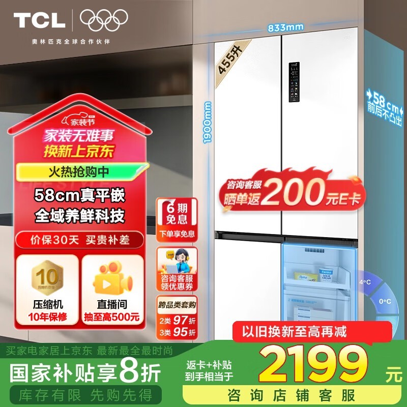 TCL超薄零嵌冰箱R455T9 - UQ京东优惠价
