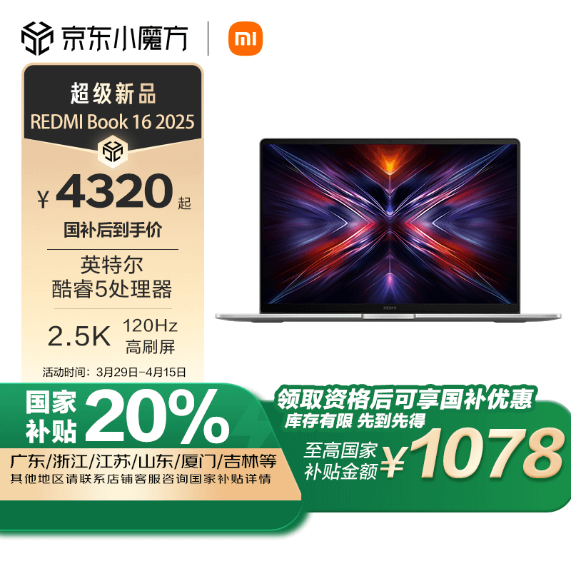 红米Book 16 2025轻薄本京东优惠价4297元