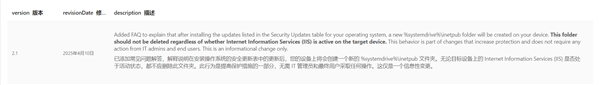 不过微软在之前的更新内容中并未提及这一点,这也导致了不少误解,对此微软在更新后的支持文档中指出:“安装操作系统安全更新表中列出的更新后,设备上将创建一个新的%systemdrive%\inetpub文件夹。”