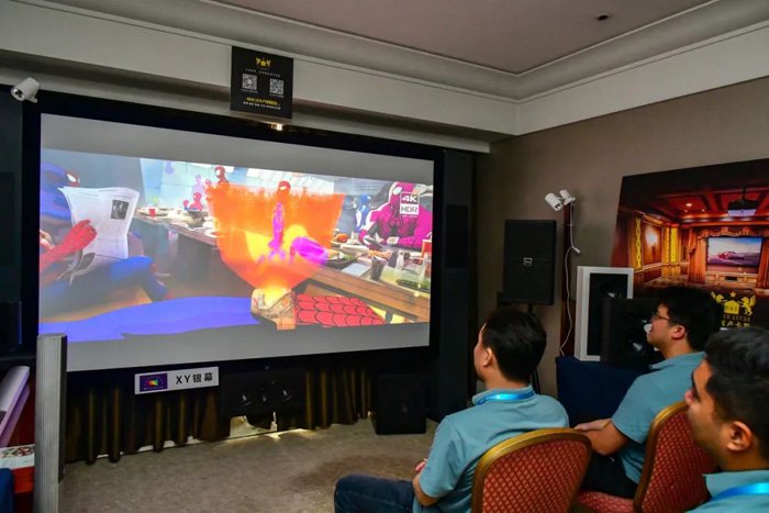 索尼和广州码尼电子科技有限公司(广州码尼)的展厅位于锦江饭店锦楠楼184房,主要展出了索尼原生4K激光家庭影院投影机的旗舰款——索尼家用投影P9和高人气的VPL-XW7000。