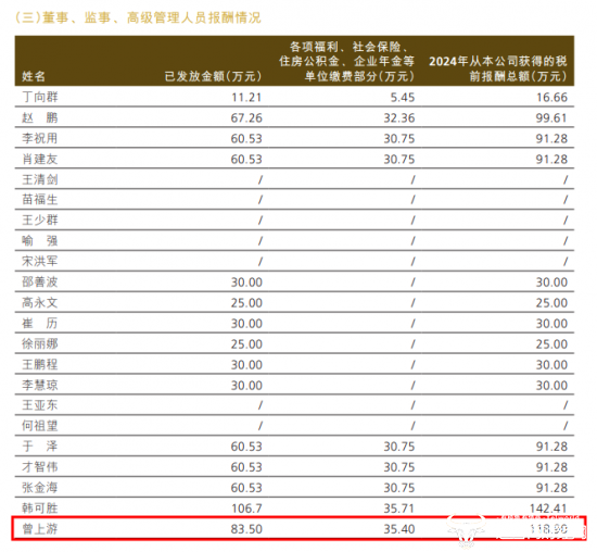 年报显示,曾上游在2024年的已发薪酬为83.50万元,各项福利、社会保险、住房公积金、企业年金等单位缴费部分为35.40万元,合计薪酬达到118.90万元,其薪酬在中国人保高管中位列第二,仅低于总裁助理韩可胜的142.41万元,比总裁赵鹏的薪酬99.61万元还要高。