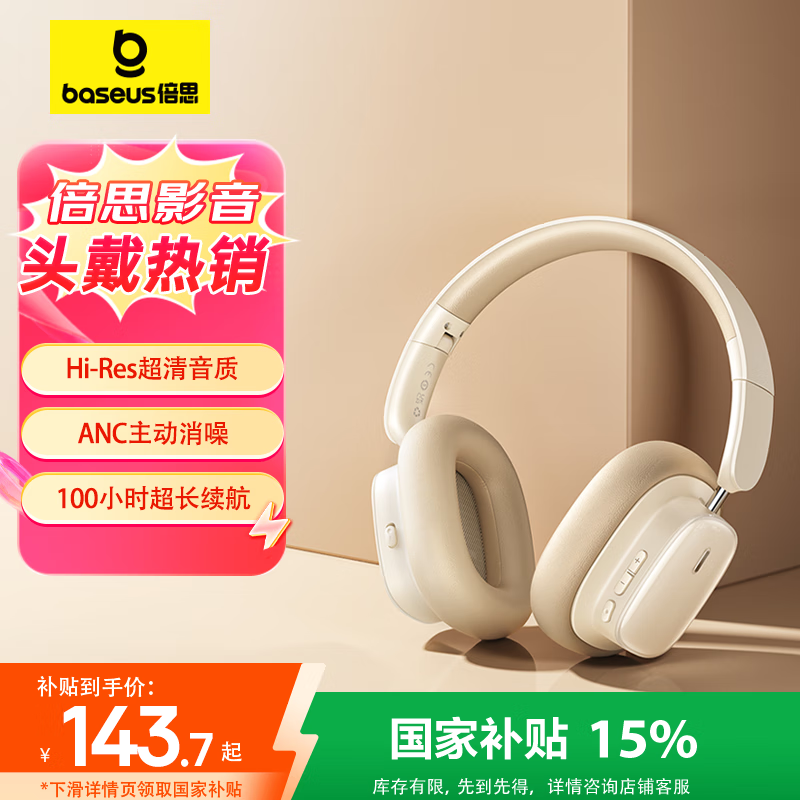 倍思H1i头戴降噪耳机主動降噪-depth38dB-LHDC高清解碼