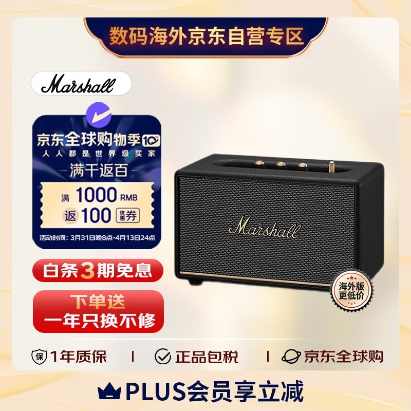 Marshall Acton III蓝牙音箱黑色经典外观设计促销