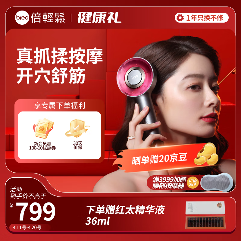 倍轻松Scalp3S头部按摩梳深空黑促销信息