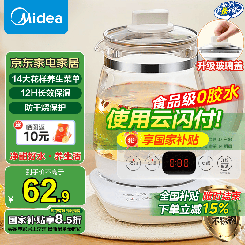 美的MK-Y15X-J养生壶1.5L京东优惠低至56.65元