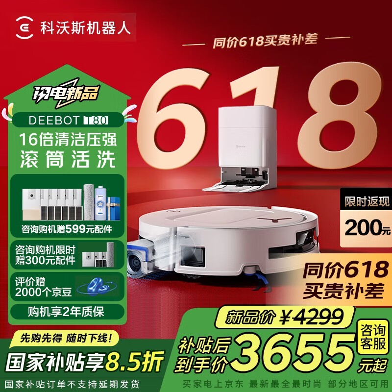 科沃斯T80水箱版扫拖一体机京东特惠3269元到手