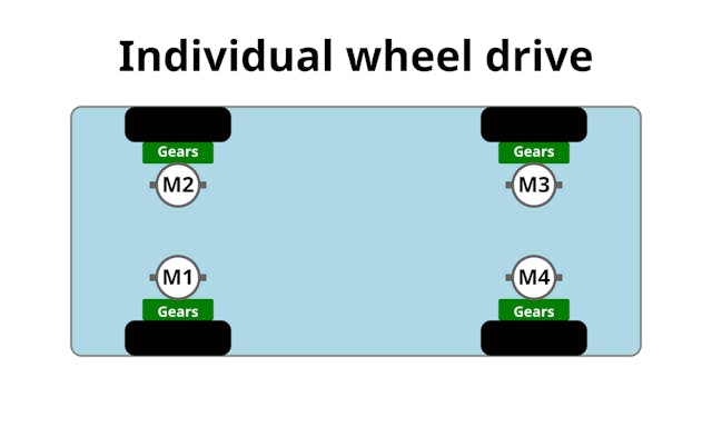 从许多方面来看,四电机电动汽车是提供安全且响应迅速的车辆的理想安排,但复杂性使实施具有挑战性。[与 R. Srikanth、Sharath S、Suhas R Holla、V Kishore(2016 年 7 月)“电动汽车中的单独车轮驱动”的图 2 有关,国际电气、电子和仪器仪表工程高级研究杂志档案——根据知识共享许可提供]