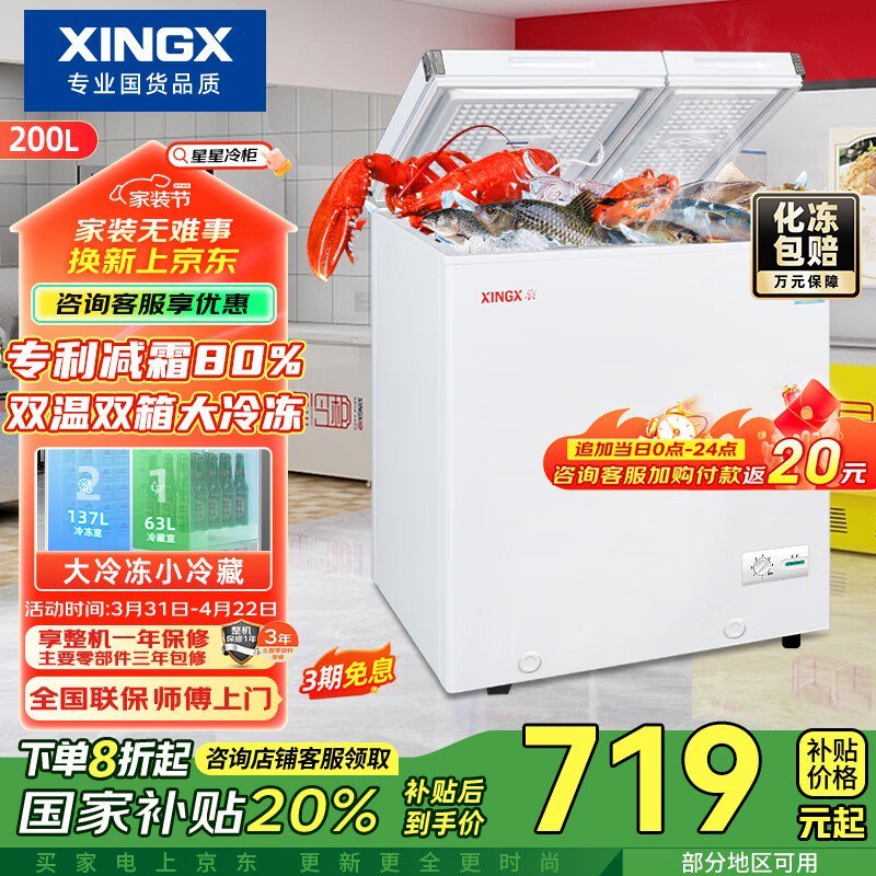 星星XINGX 200升冷柜京东价899现664