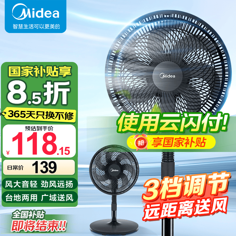 美的SAF30AB落地扇(静谧黑)超值价99.65元