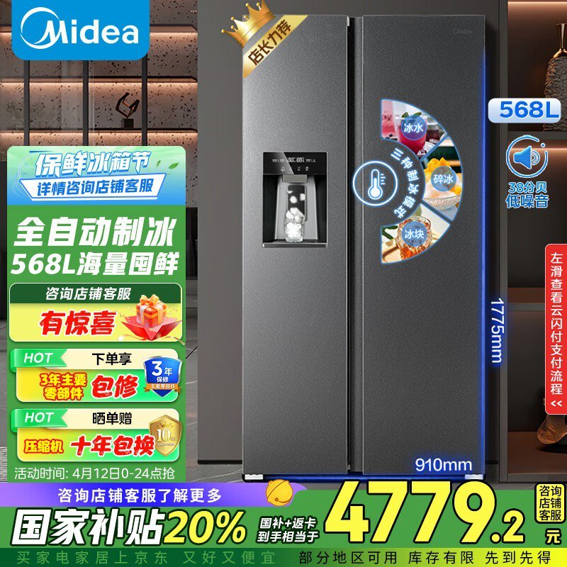 美的586L风冷对开门冰箱 京东优惠价低至4284元