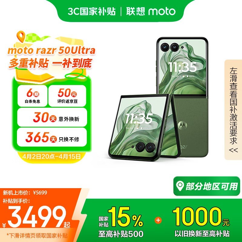 摩托罗拉moto razr 50 Ultra折叠屏手机摩登艾绿限时4999元