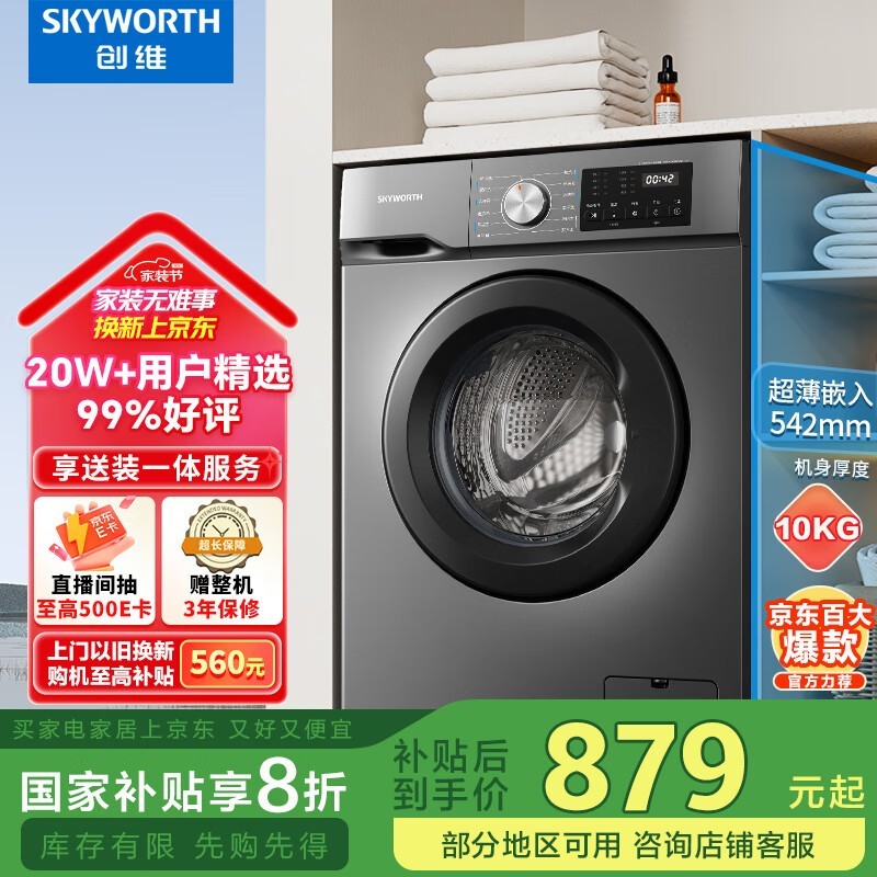 创维10公斤滚筒洗衣机XQG100-B26RB京东促销仅875元