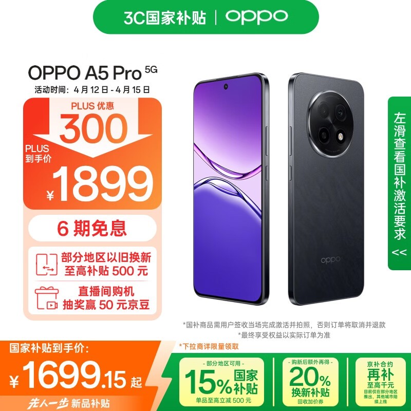 OPPO A5 Pro 5G手机8GB+512GB京东优惠价1614元