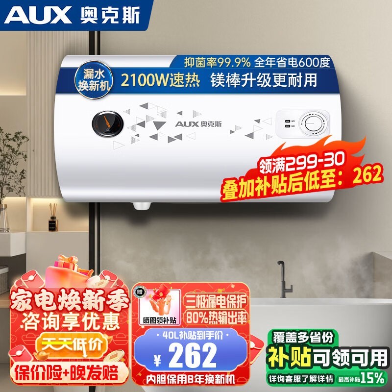 奥克斯电热水器强力促销到手仅需235元