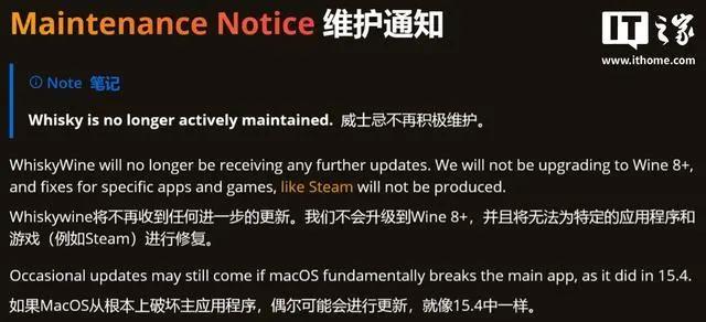 开发者表示,维护Whisky耗费大量时间,作为学生,他未从中获得报酬,难以继续投入热情,表示如果未来macOS升级导致应用出错,可能会有少量修复,但不会提供长期支持。