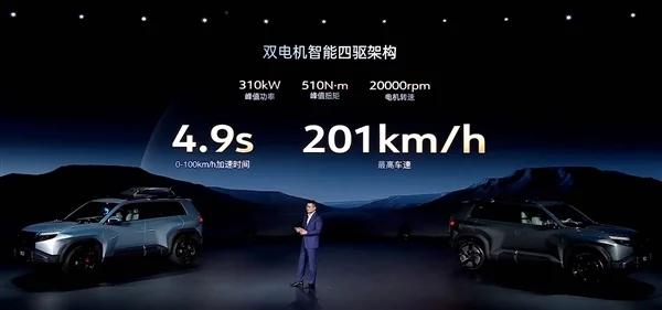 动力部分,钛3搭载双电机四驱动力,最大可输出422马力,0-100km/h加速时间4.9秒,最高车速201km/h。