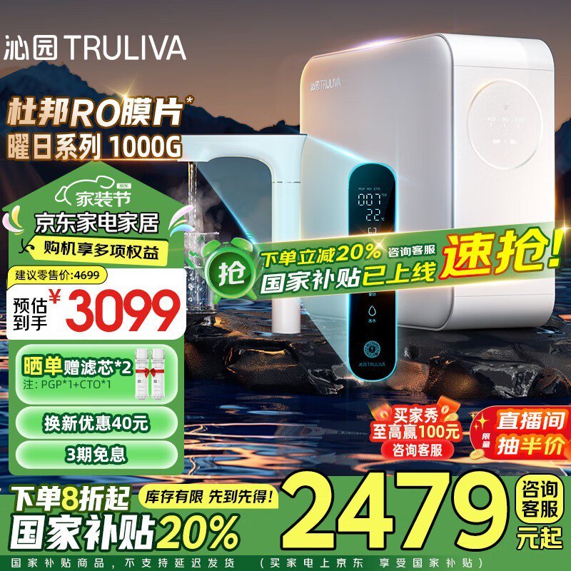 沁园曜日加热净水器1000G智能触控屏即热直饮一体机