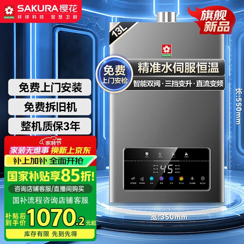 樱花13升燃气热水器双重降噪多重防护京东特惠