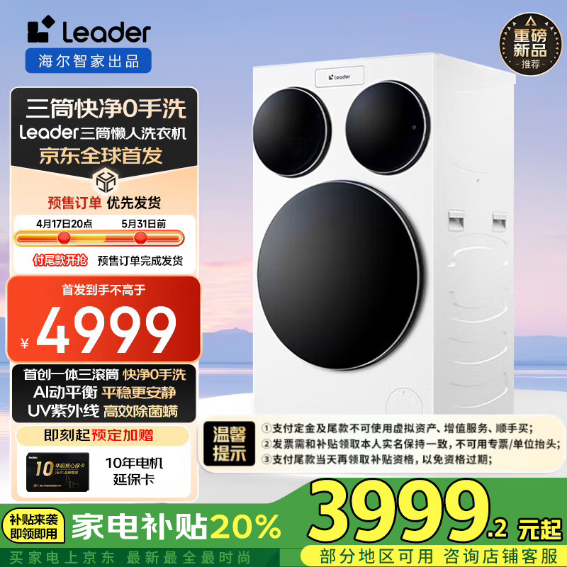 Leader三桶懒人滚筒洗衣机XQGL125-MBLDE697WU1超值优惠