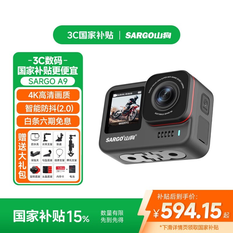 山狗A9运动相机4K超清防抖小型便携摄像机京东699元