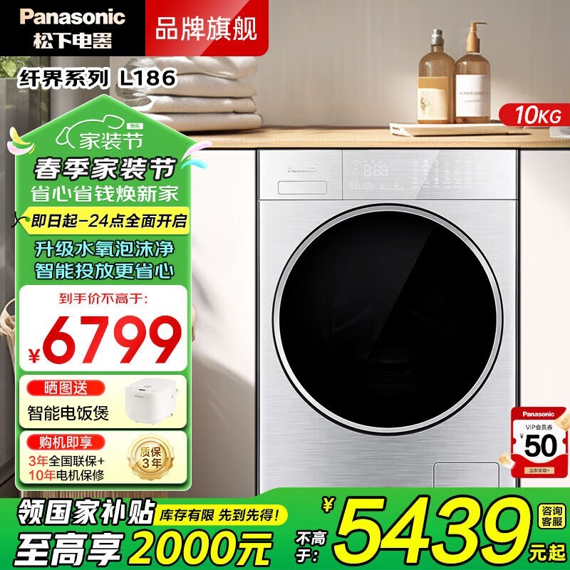 松下L纤界XQG100-L186洗衣机10KG智能滚筒促销到手4231元