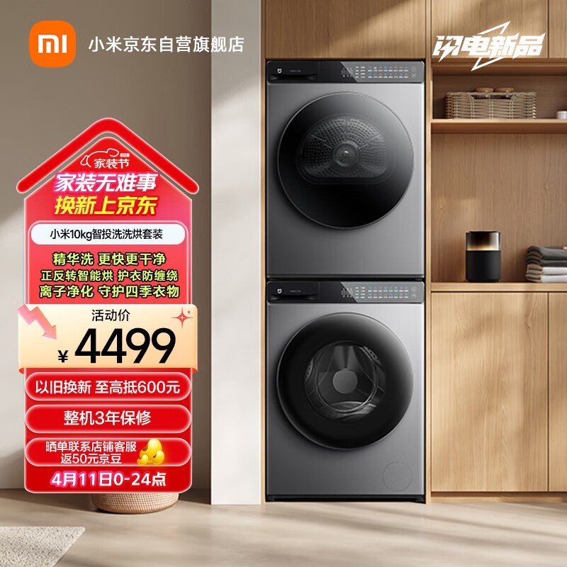小米智投洗烘套装10kg滚筒洗衣机+10kg热泵烘干机仅3584元