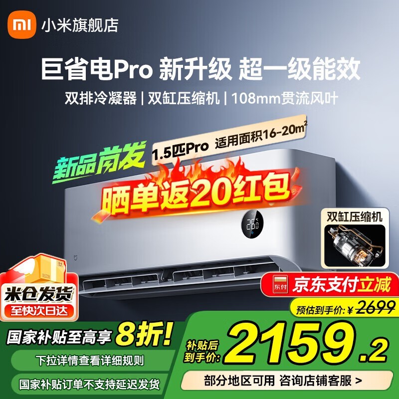 小米Xiaomi空调1匹壁挂式,1979元可入手