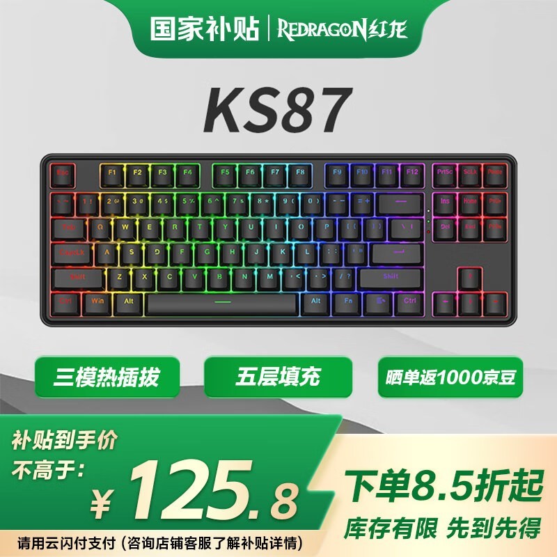 REDRAGON KS87三模机械键盘星空黑龙舞轴京东促销
