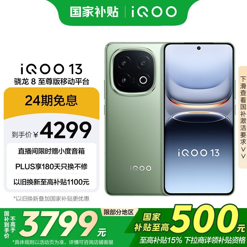 iQOO 13旗舰手机京东特惠4099元起配骁龙8至尊版处理器