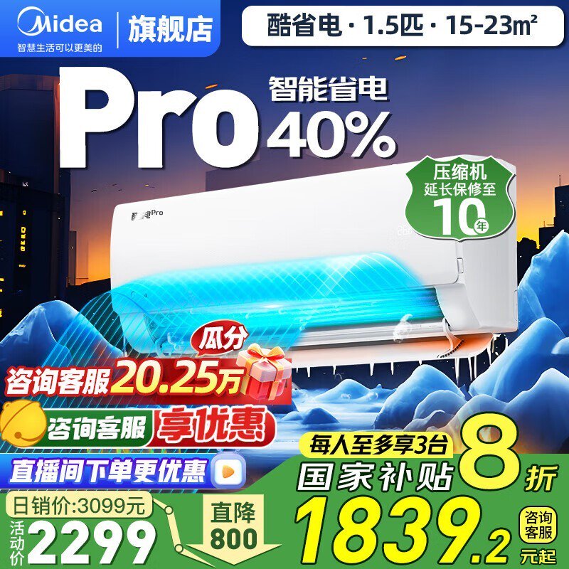 美的1.5匹壁挂式空调KFR-35GW酷省电Pro新一级能效