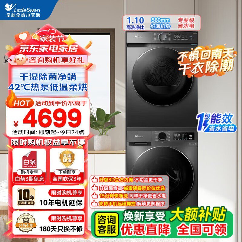 小天鹅洗烘套装 原价4498现2798可拿下