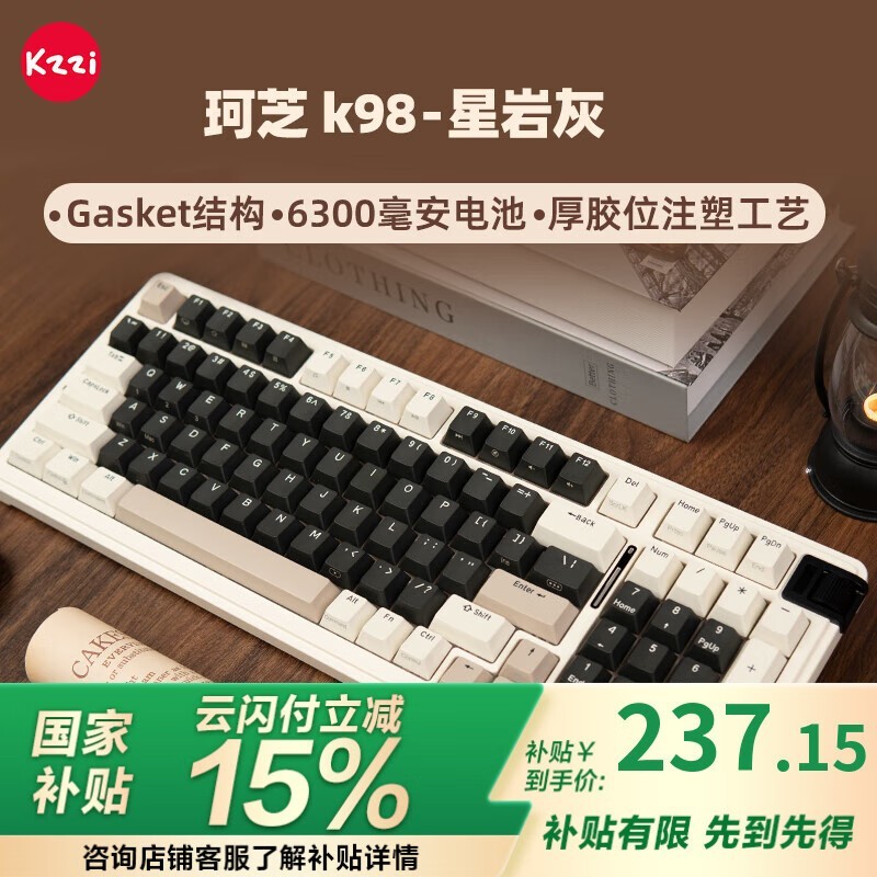 珂芝KZZI K98三模机械键盘彩虹轴星岩灰200元以下