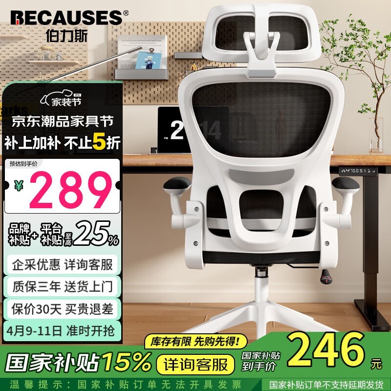 伯力斯MD-801W白框电脑椅人体工学居家办公学习电脑椅