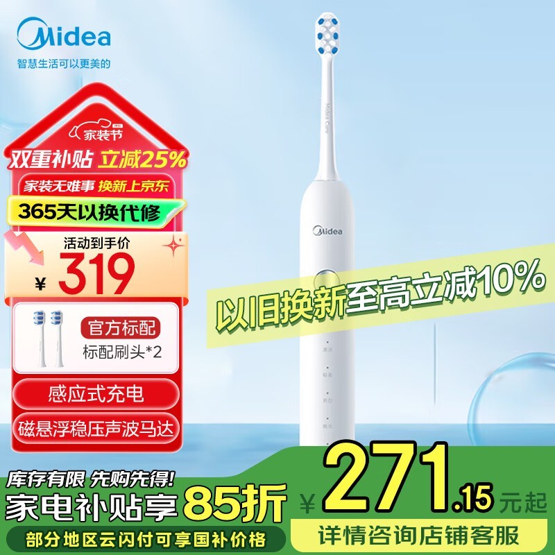 美的MC-AJ0101电动牙刷冰川白款促销中仅319元
