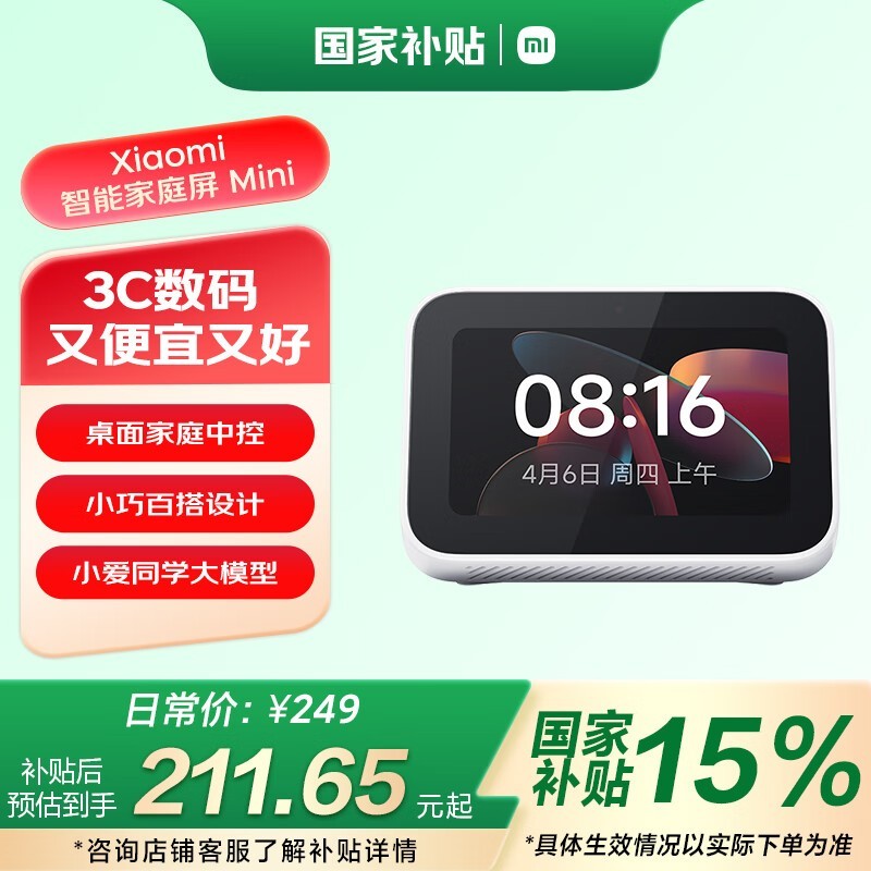 小米庭屏Mini蓝牙音箱白色,京东优惠价202元