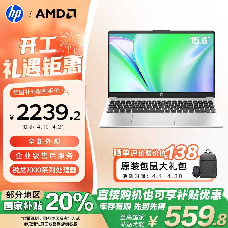 惠普锐15轻薄本R5-7530U款限时特惠至2228元