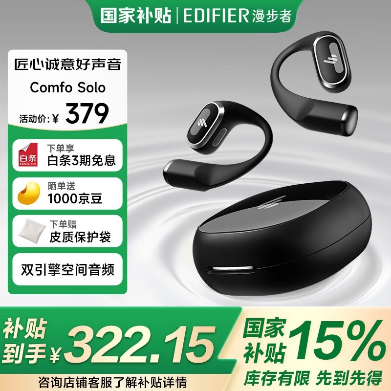 漫步者ComfoSolo蓝牙耳机京东特惠至262元