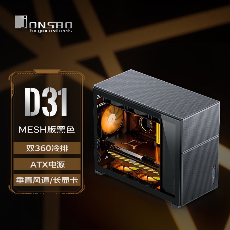 乔思伯D31 MESH版机箱京东促销仅269元支持副屏双屏办公