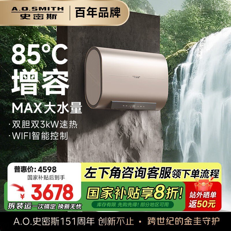 史密斯60升电热水器 原价4598现3663