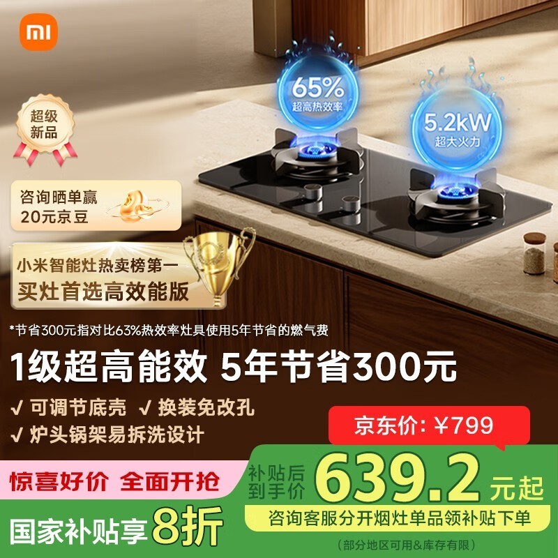 米家小米智能燃气灶S2高能效版 京东国补8折639元