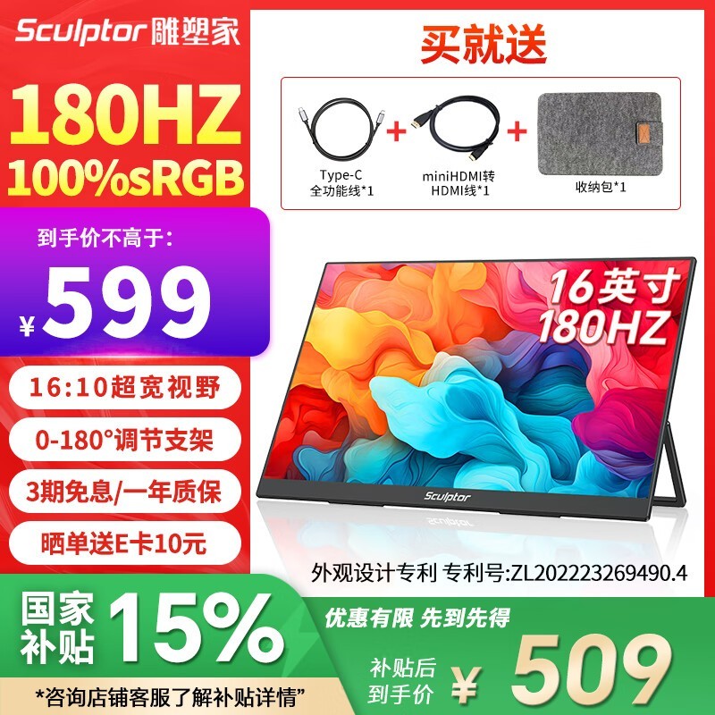雕塑家16英寸便携显示器419元秒杀